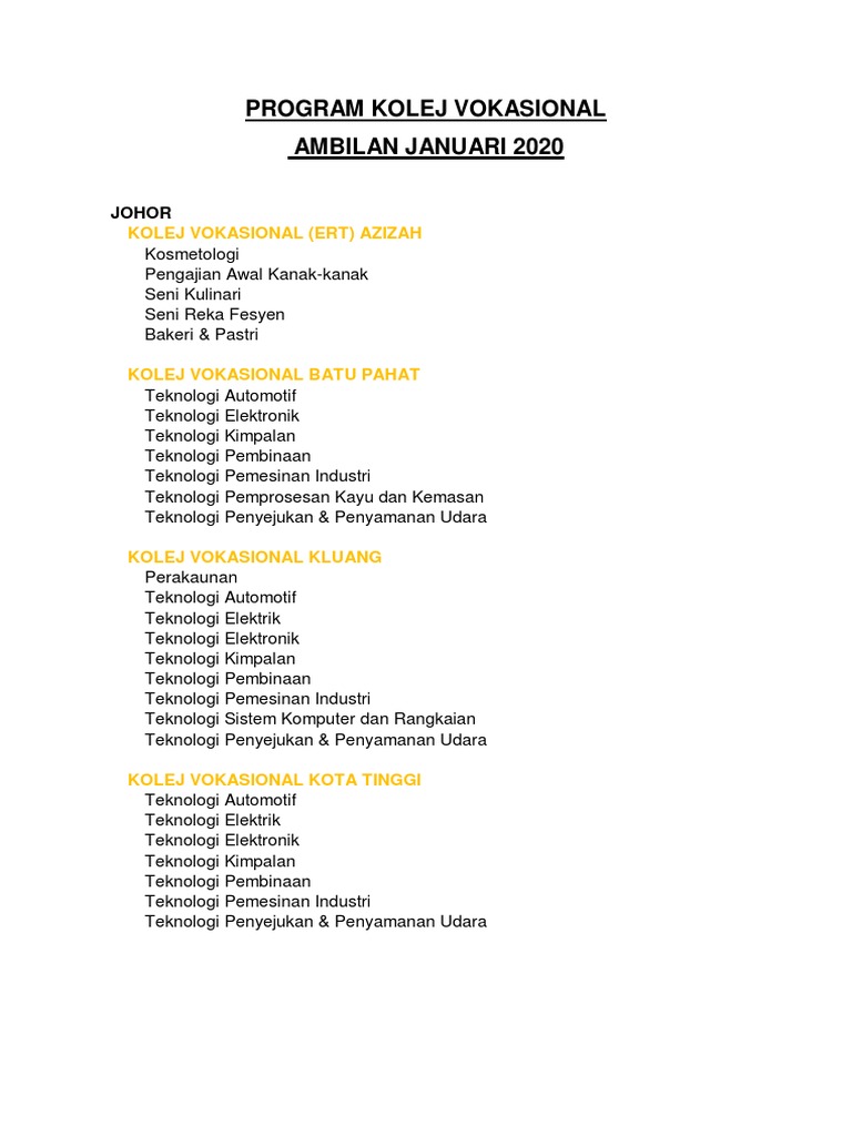 Senarai Kolej Vokasional Dan Kursus Yang Ditawarkan Di Kv